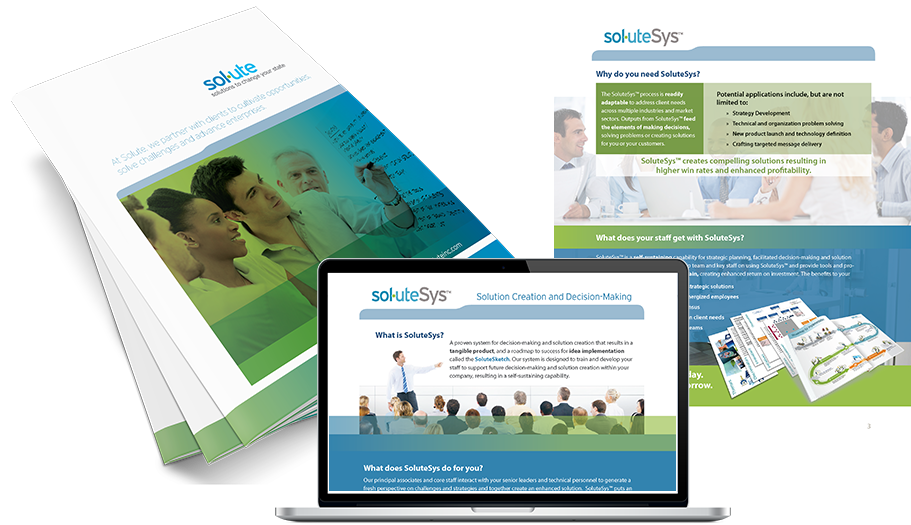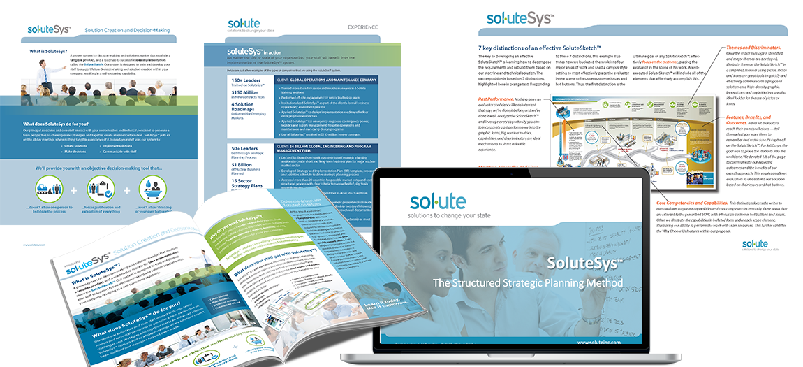 This content strategy positioned Solute not just as a consulting startup, but as a structured, scalable, and executive-ready brand—with integrated messaging across print, digital, web, and training platforms that supported both credibility and product adoption.